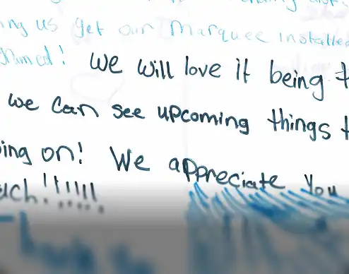 Thank you note from Cliff School students for installing their new marquee sign.